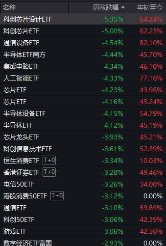 结合场内ETF的周度表现来看,不少科创芯片、通信、半导体等主题的产品领跌,令科技线的溃退更加具象化。