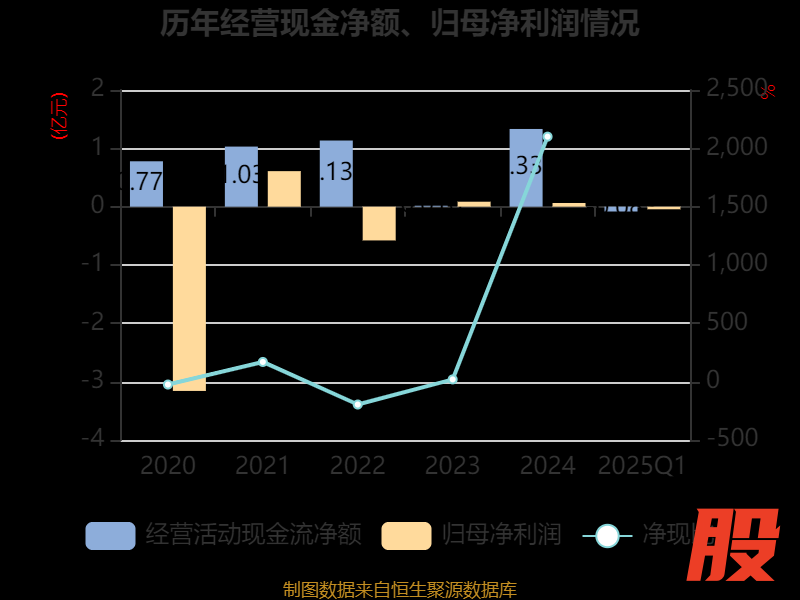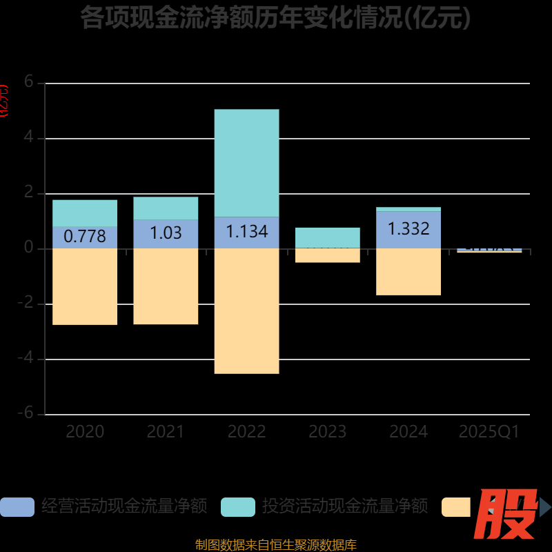 截至2025年一季度末,公司经营活动现金流净额为-830.56万元,同比减少2612.75万元;筹资活动现金流净额-518.26万元,同比减少1899.65万元;投资活动现金流净额-189.22万元,上年同期为-72.51万元。