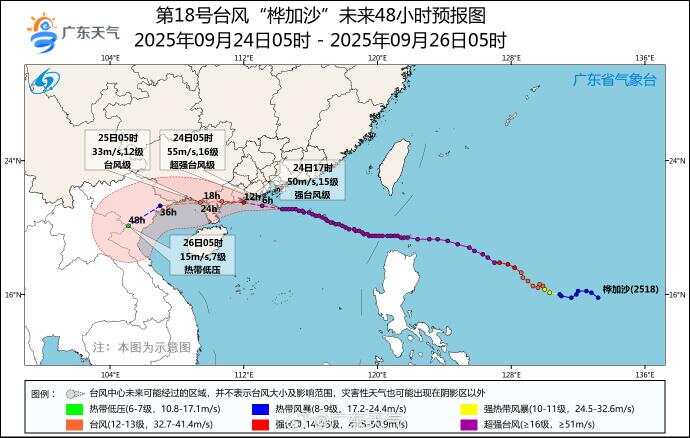 广东省气象台预计,未来24小时内“桦加沙”将以每小时20公里左右的速度向西偏北方向移动点登富,将于24日下午到夜间在台山到徐闻之间沿海登陆。