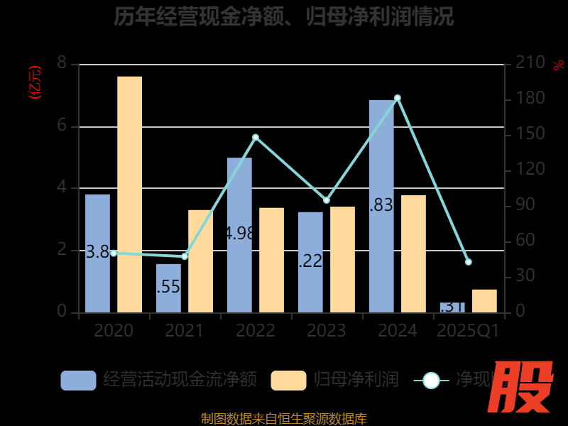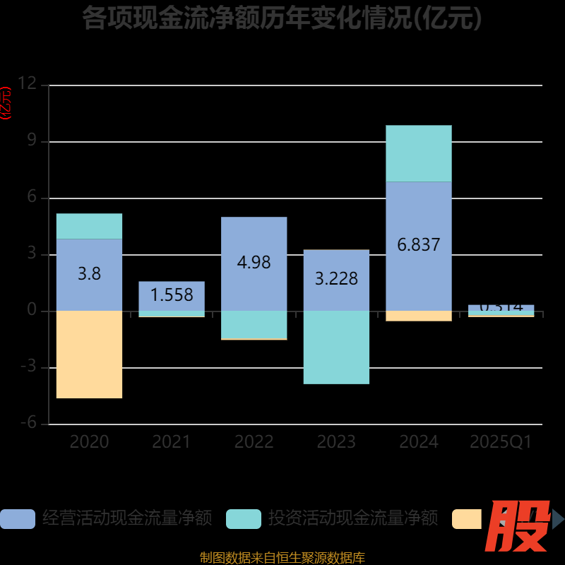 截至2025年一季度末,公司经营活动现金流净额为3144.81万元,同比增加6268.91万元;筹资活动现金流净额-990.21万元点登富,同比减少499.96万元;投资活动现金流净额-2349.3万元,上年同期为-2478.23万元。