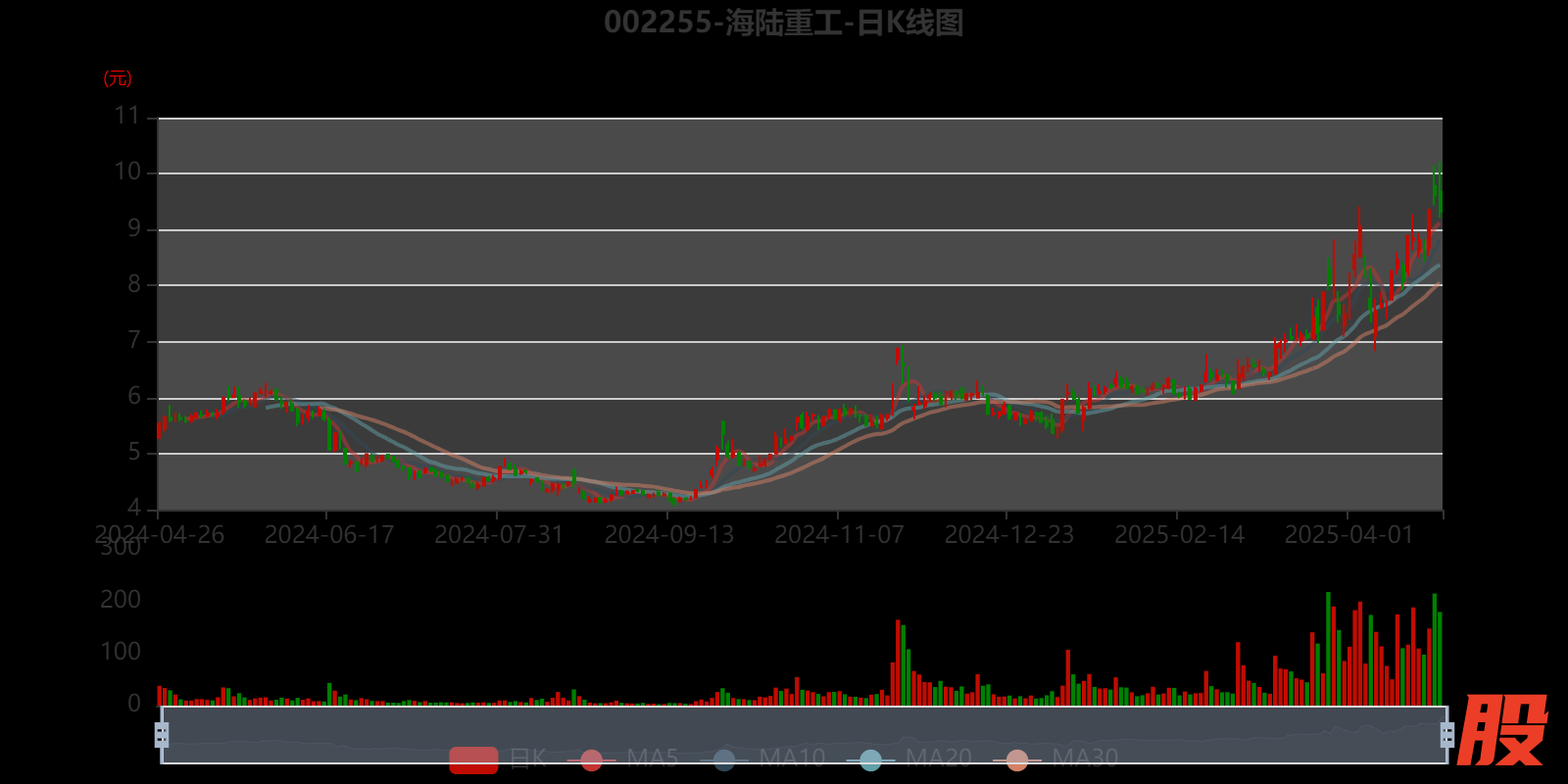 以4月25日收盘价计算,海陆重工目前市盈率(TTM)约为19.09倍,市净率(LF)约1.9倍,市销率(TTM)约2.78倍。